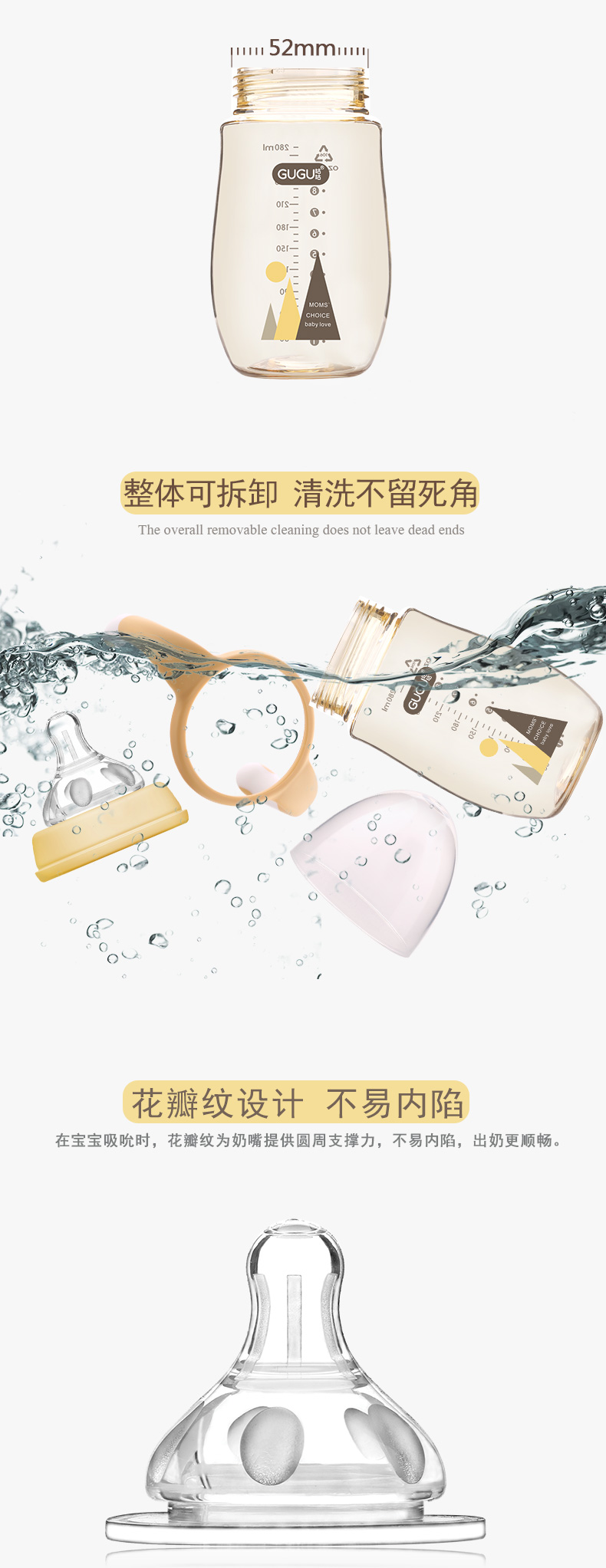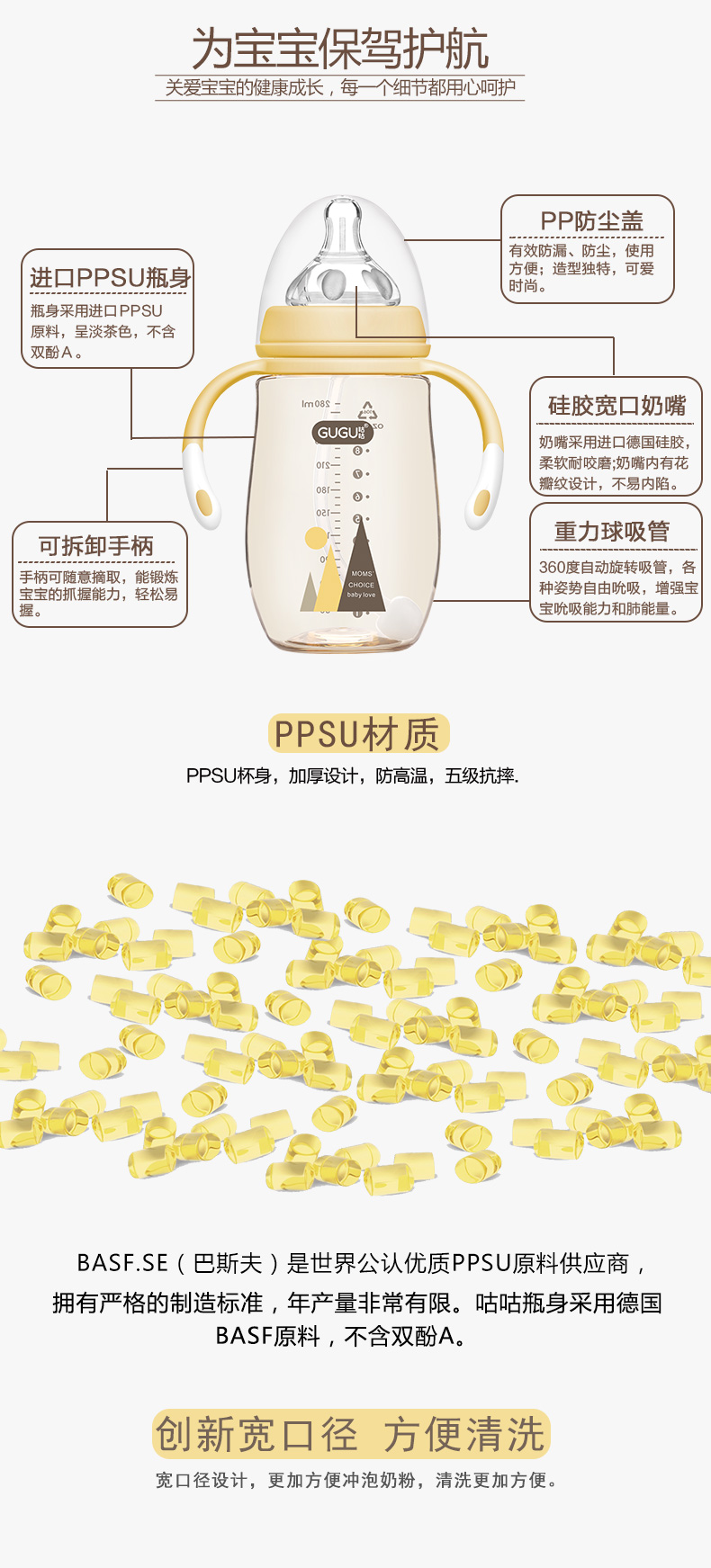 顏 色:都市灰/典雅黃/簡約白      材 質:PPSU(奶瓶瓶身呈淡茶色)